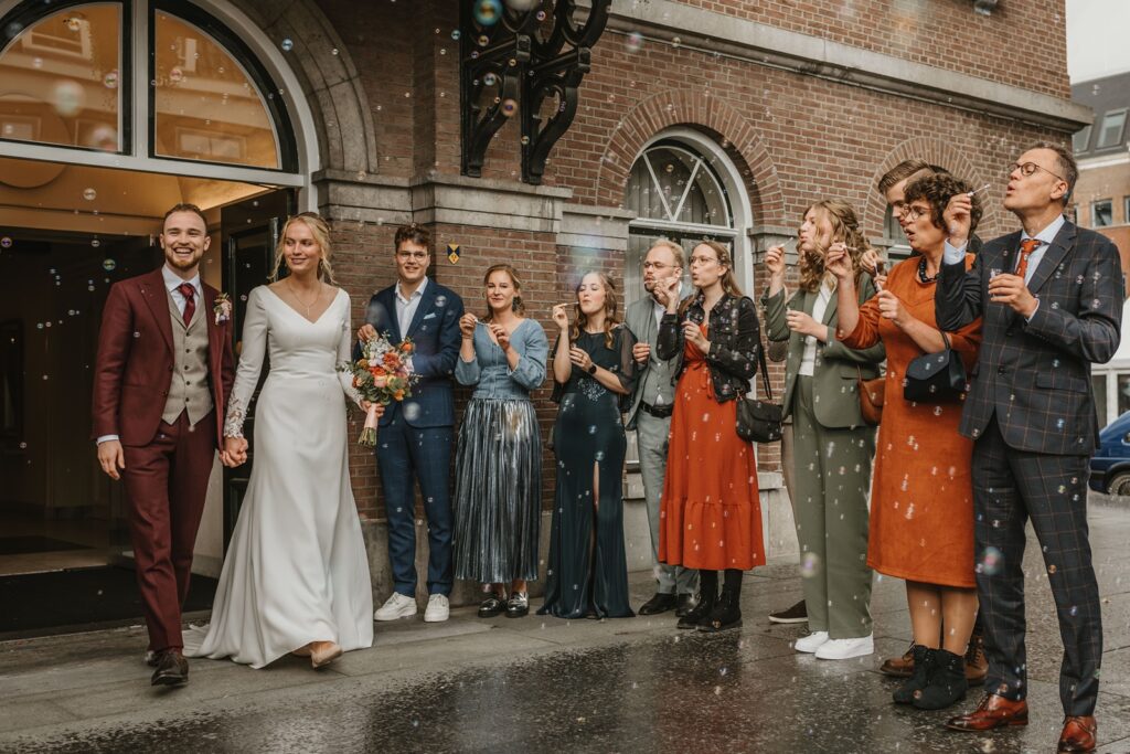 Je hoeft als bruidspaar niet de hele tijd ‘aan’ te staan, of iedereen tevreden te houden. Je mag helemaal jezelf zijn en hoeft geen rol te spelen. En precies dat maakt het verschil, voor jullie beleving en voor de uiteindelijke foto’s.