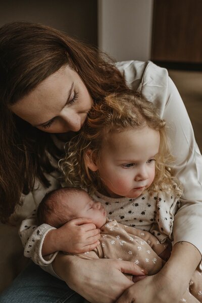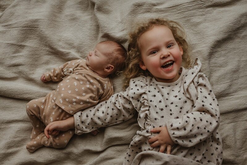 Een newbornshoot draait niet alleen om de baby, maar om jullie als gezin. Ik betrek grote broer of zus er op een speelse manier bij en leg de interactie tussen jullie vast. Warm, vol liefde, precies zoals het is.
